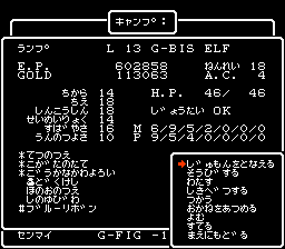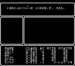 | ロイン | 魔 | 13 | 77 | 17 | 18 | 12 | 18 | 17 | 15 | 0 | マスターレベル!いよいよ地下9階だ! |