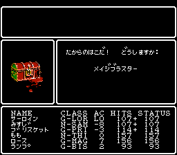 | 三洲次 | 「未だに1つしか出てこない『村正』、『英雄の鎧』、『回復の指輪』、『手裏剣』を装備している俺の方が、 むしろ貴重な装備で身を包んでると言えるな」 |