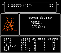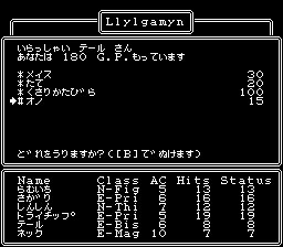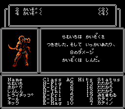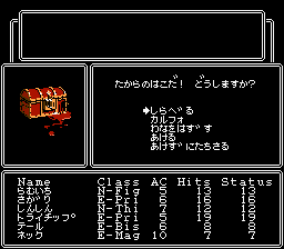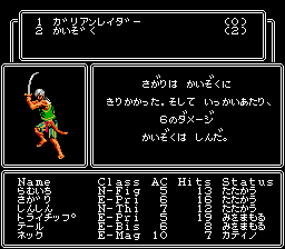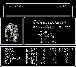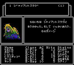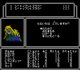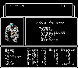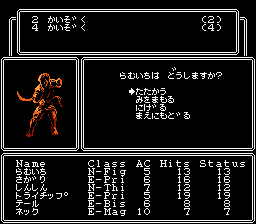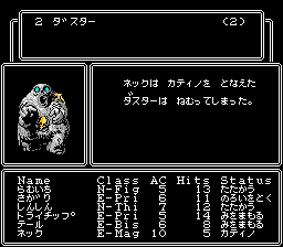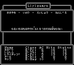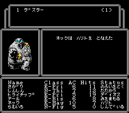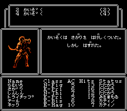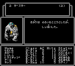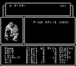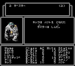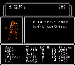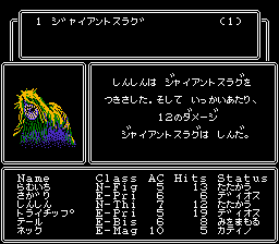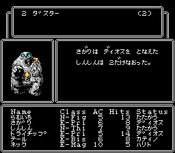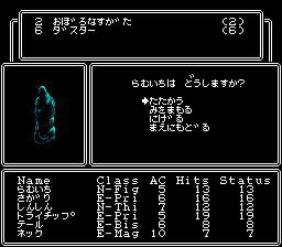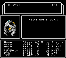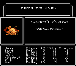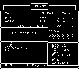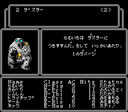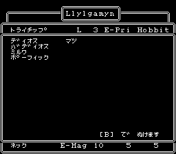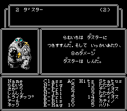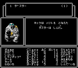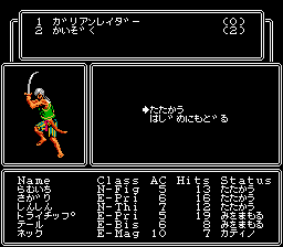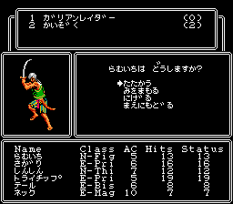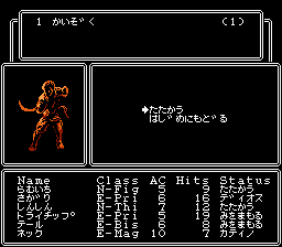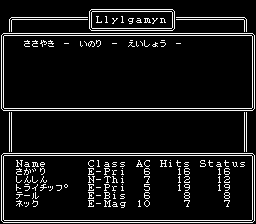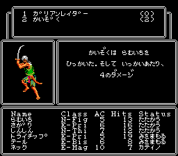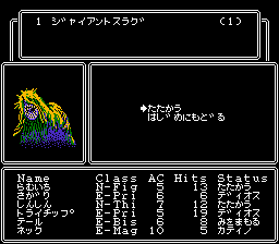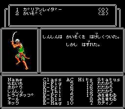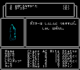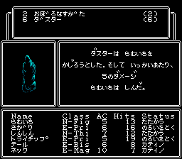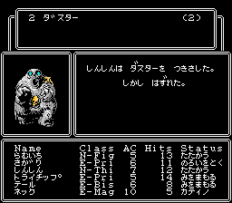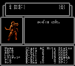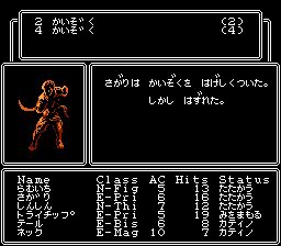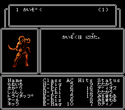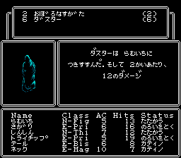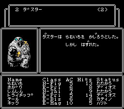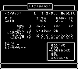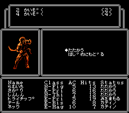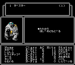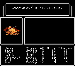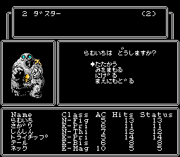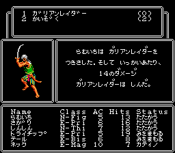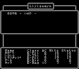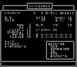 心々 | 盗 | 3 | 12 | 11 | 9 | 6 | 11 | 11 | 12 | 0 | 2 | 攻撃が当たらない。盗賊に前衛は厳しいか?でも後衛にいられてもなぁ…。 |
