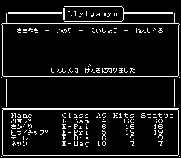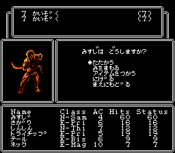 名前 | 職 | LV | H.P. | 力 | 知 | 信 | 生 | 早 | 運 | 吸 | 死 | コメント |
