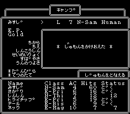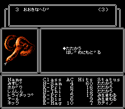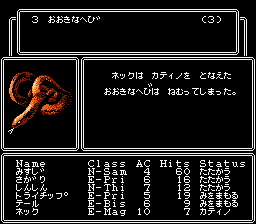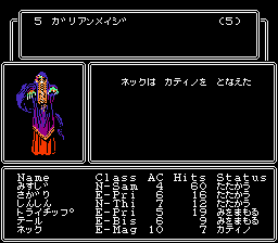 ネック | 魔 | 3 | 7 | 8 | 15 | 11 | 10 | 14 | 8 | 0 | 1 | 何気に素早さがパーティー1番なんだな。まぁ、重要ですよね。 |