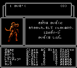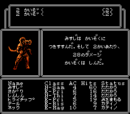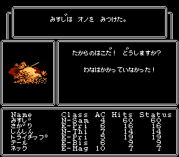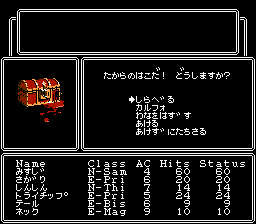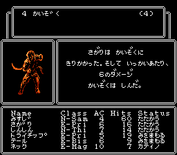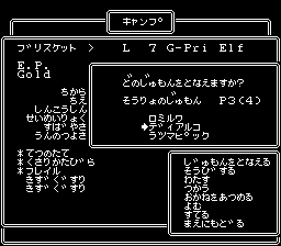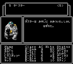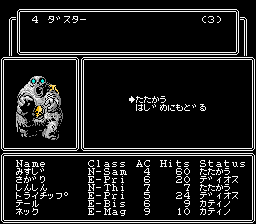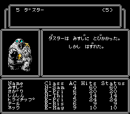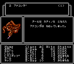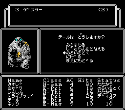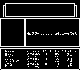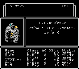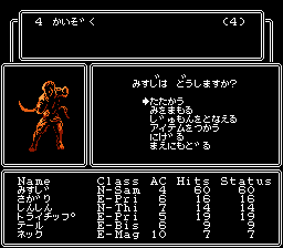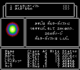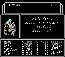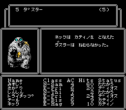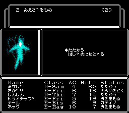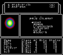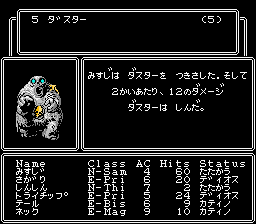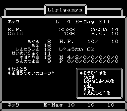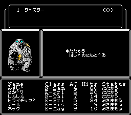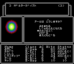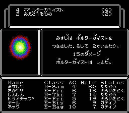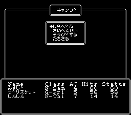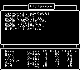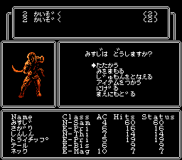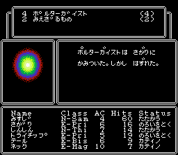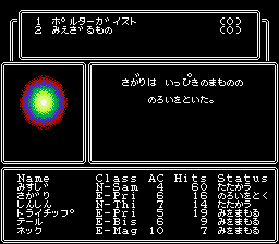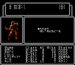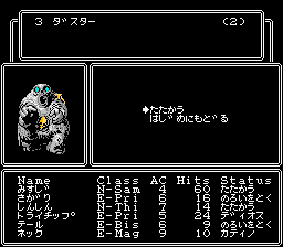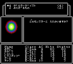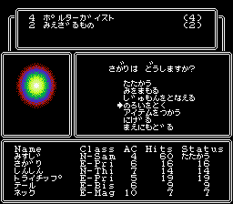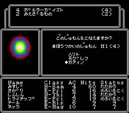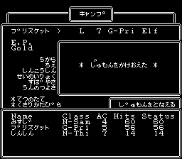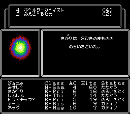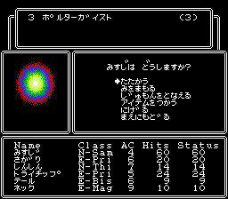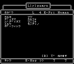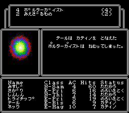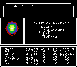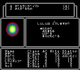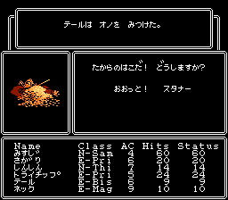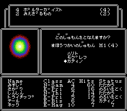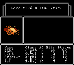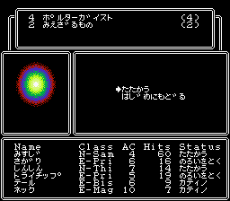 沙賀里 | 魔 | 4 | 20 | 11 | 11 | 13 | 10 | 11 | 11 | 0 | 2 | 呪文の習得は順調。ディスペルも彼女頼り。何気に優秀なんだよな。 |