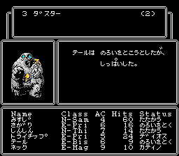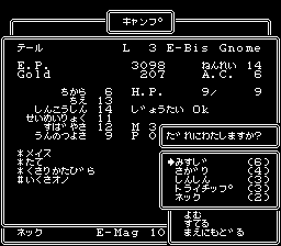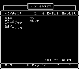 トライチップ | 僧 | 4 | 24 | 8 | 10 | 13 | 13 | 11 | 15 | 0 | 0 | レベル2呪文はいまだ2個。ディスペルも全然ダメ。沙賀里を見習え! |