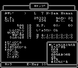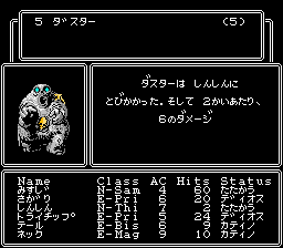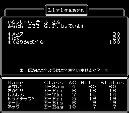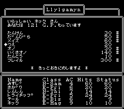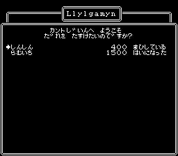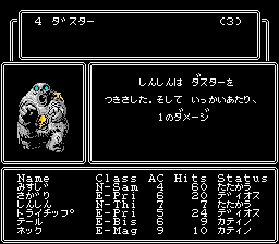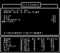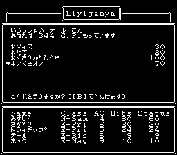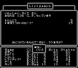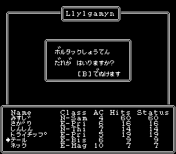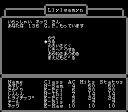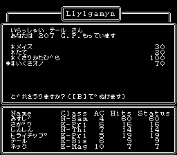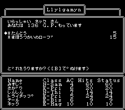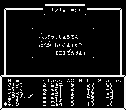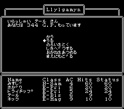 店員の男 | 「いらっしゃいませっ!! 豊富な品揃えの凶器をお求めやすい価格でご提供!! 殺しの総合デパート『ボルタック商店』へようこそっ!!」 |