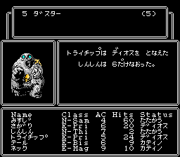 トライチップ | 「結局やることって、魔物を倒して宝箱からアイテムをゲットして、 それをボルタック商店へ売るんだろ?! それは迷宮に行く冒険者がみんなやってるって、何度言えば分かるんだ?!」 |
